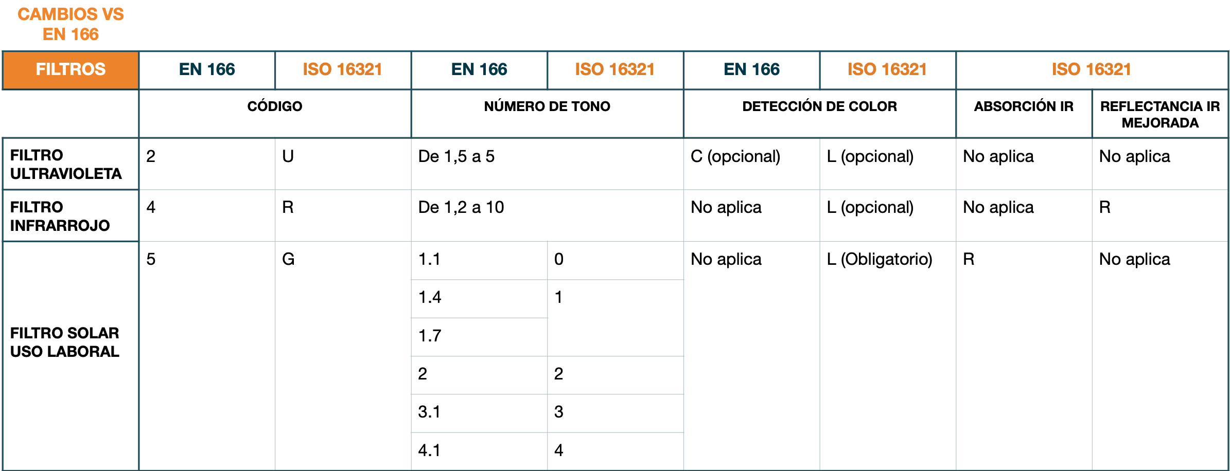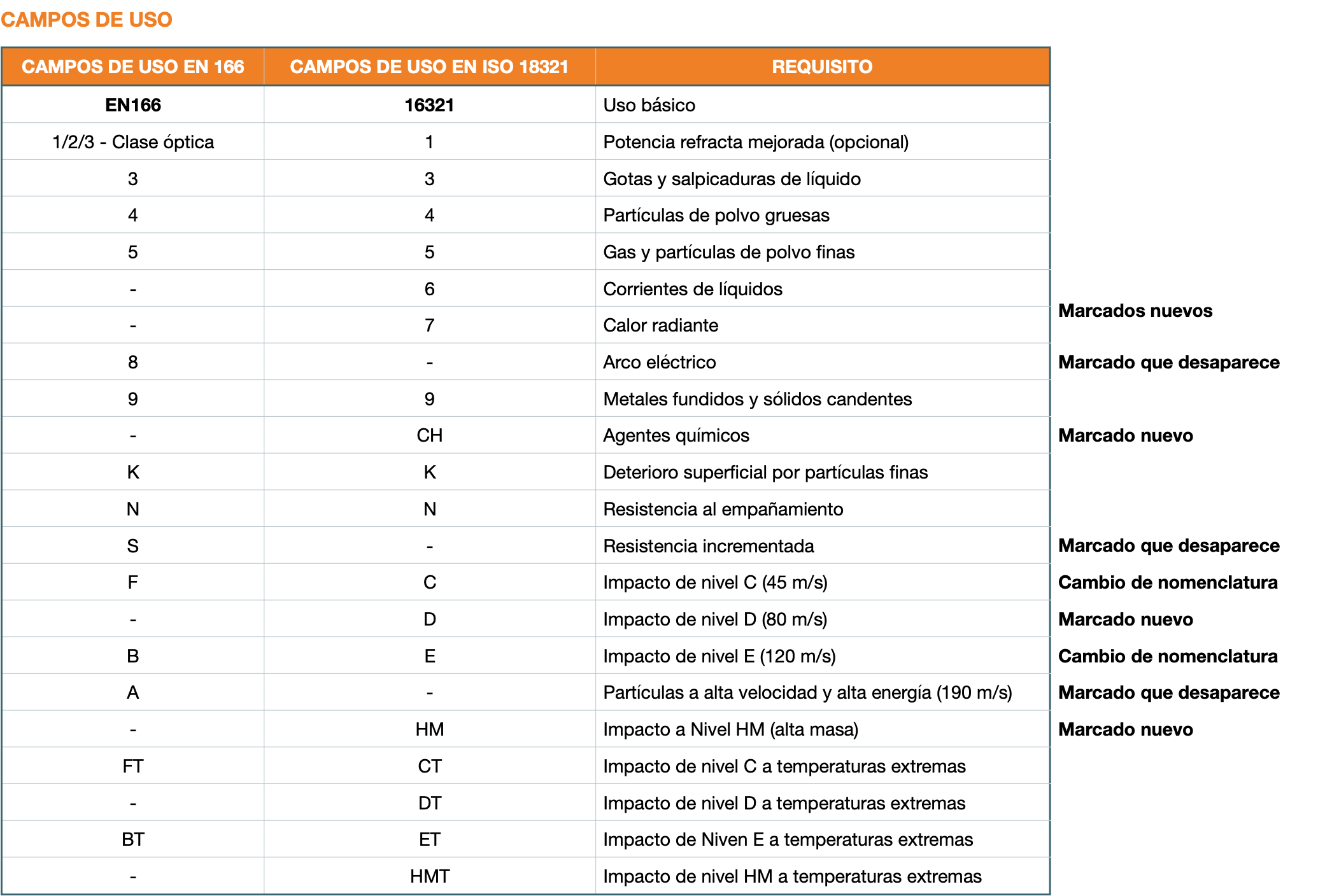 Cambios con respecto a la norma EN 166: