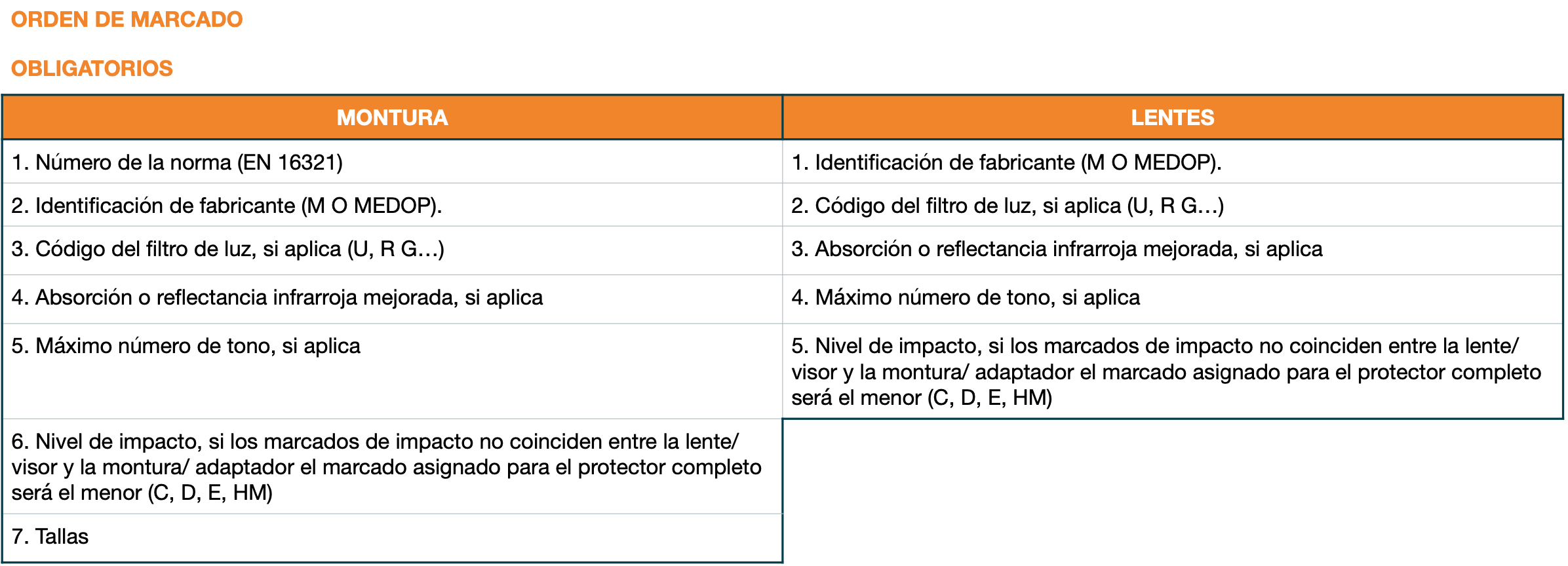 Te adelantamos además, que la ISO 16321 traerá consigo cambios en los marcados en cuanto a campos de uso y orden tanto en lente como en montura: