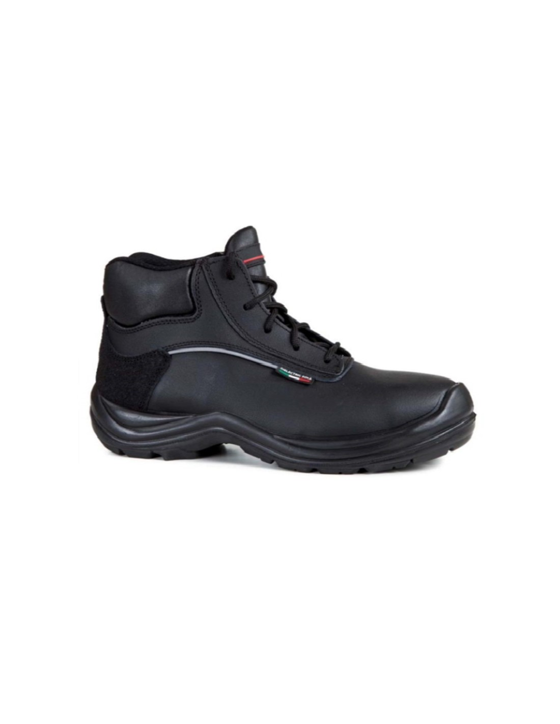 Bota de seguridad de microfibra textil transpirable e hidrofugada con suela tridensidad que incorpora canal de estabilización central en el tacón.
