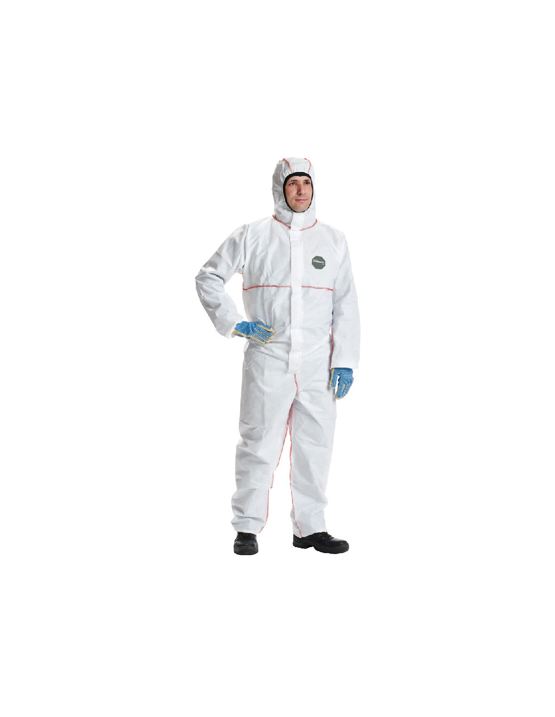 Buzo desechable DuPont con capucha, cierre frontal cremallera y elásticos en cintura, capucha, tobillos y puños. Capucha de tres piezas para un ajuste facial óptimo y mayor protección.