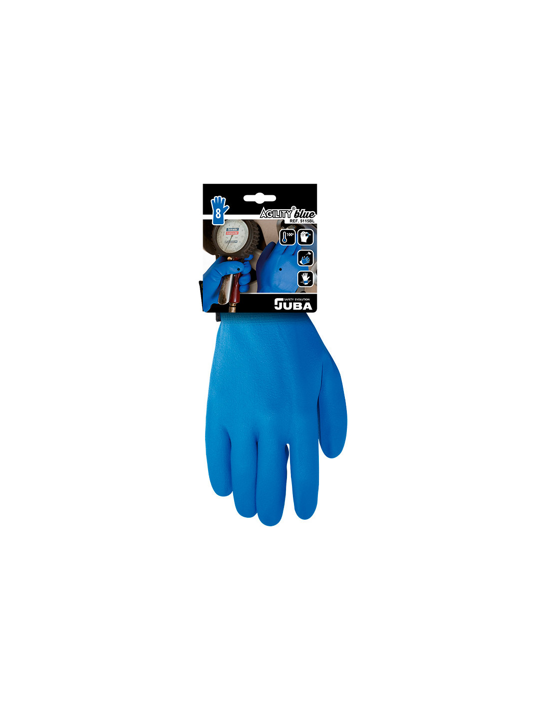 Descubre los guantes de nitrilo JUBA - 5115BL Agility Blue, diseñados para ofrecer una protección robusta y versátil en diversas aplicaciones industriales. Estos guantes sin costuras, recubiertos de nitrilo micro foam, combinan durabilidad, confort y un sólido agarre, siendo ideales para una amplia gama de tareas laborales.