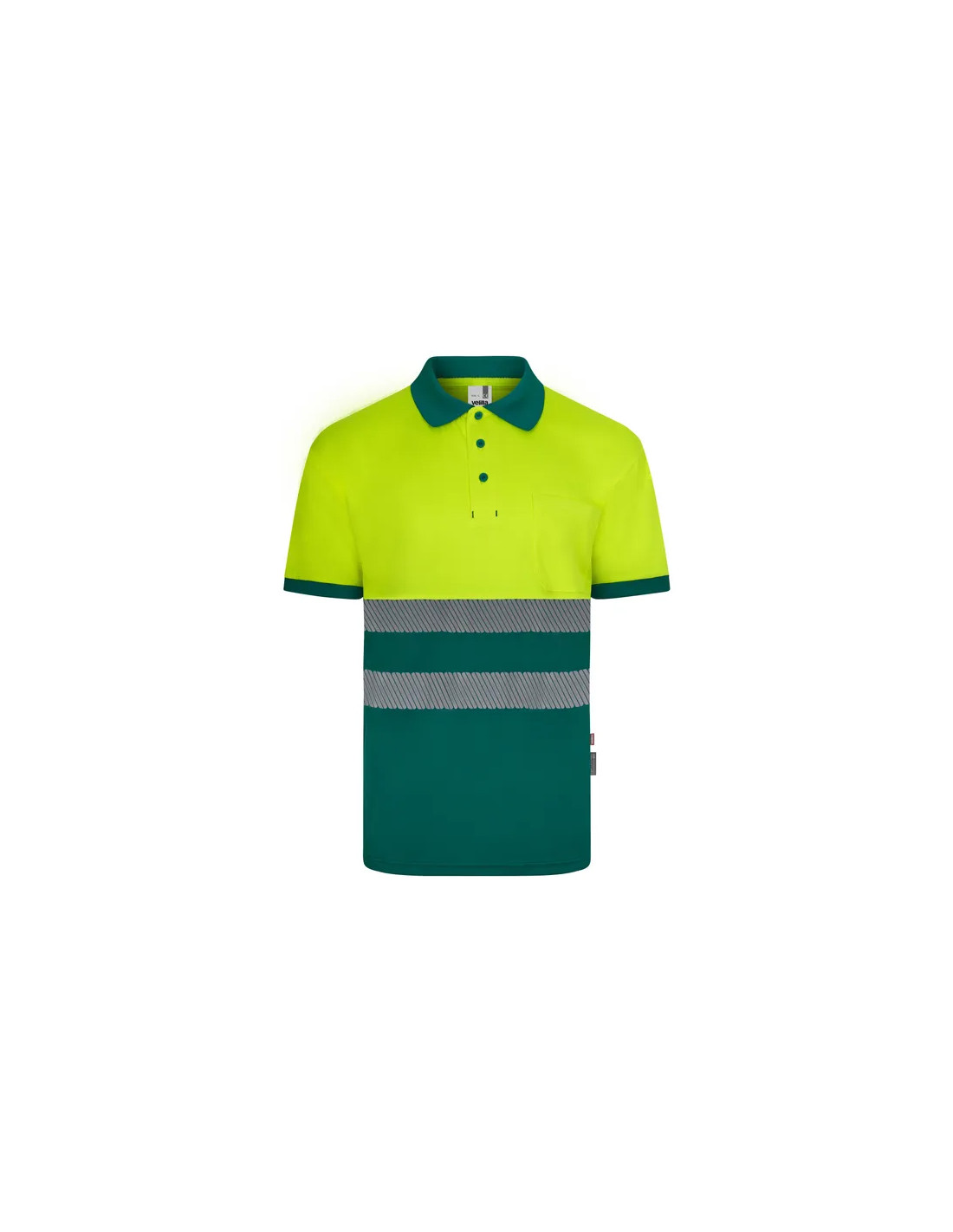 Polo alta visibilidad, 100% poliéster reciclado, bicolor de manga corta.