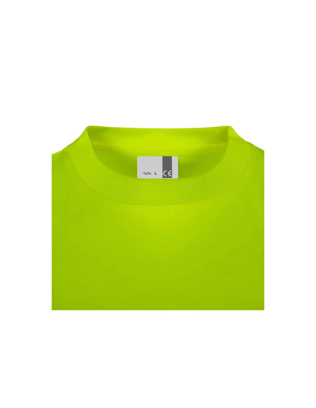 Camiseta de alta visibilidad, con manga corta, hecha de poliéster 100% reciclado y con banda segmentada
