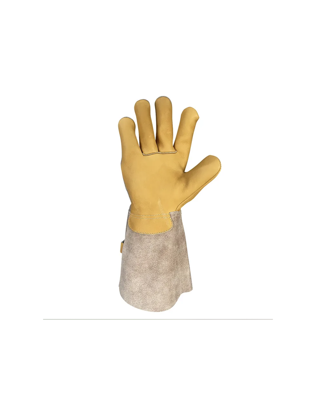 Guante de piel vacuno mixto de serraje y flor con forro de aramida en palma.